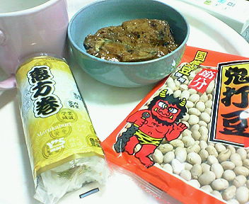 恵方巻と豆といわし!一人豆まきしたよ!寂しい!